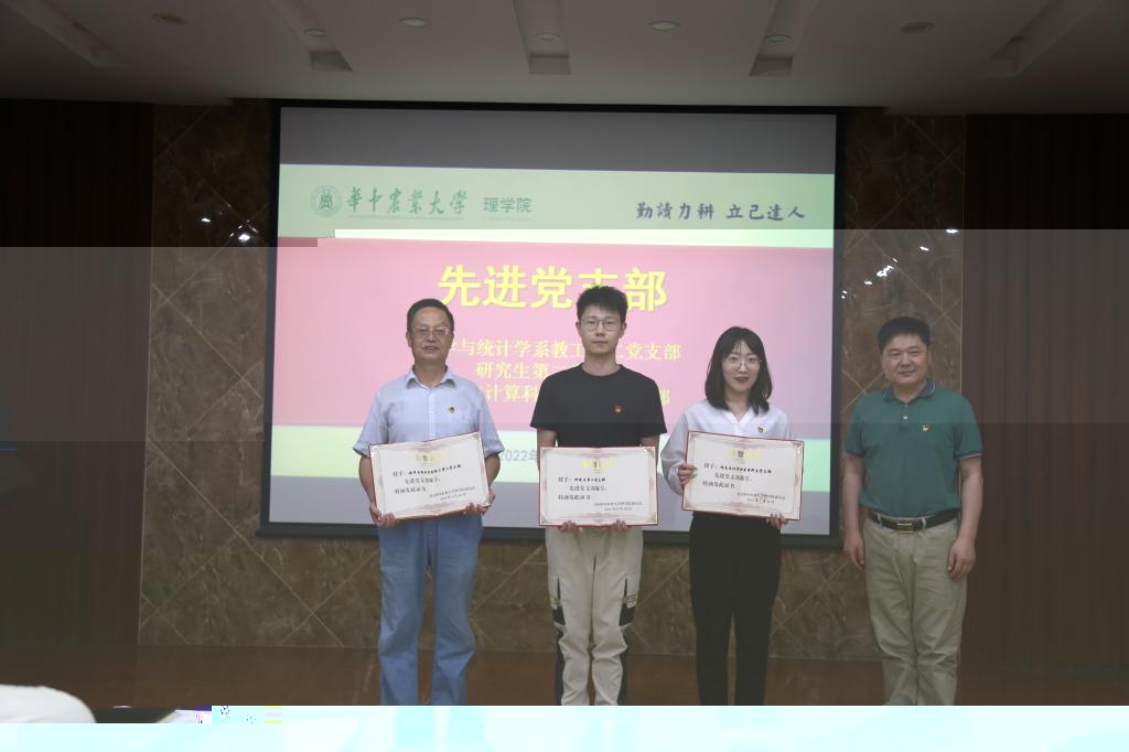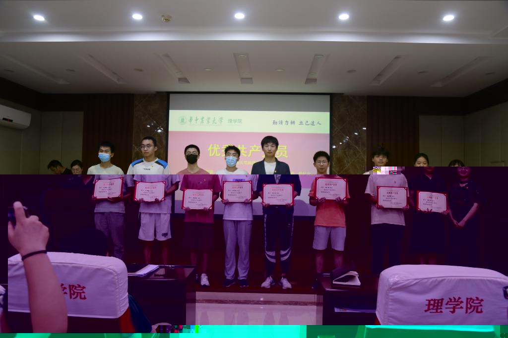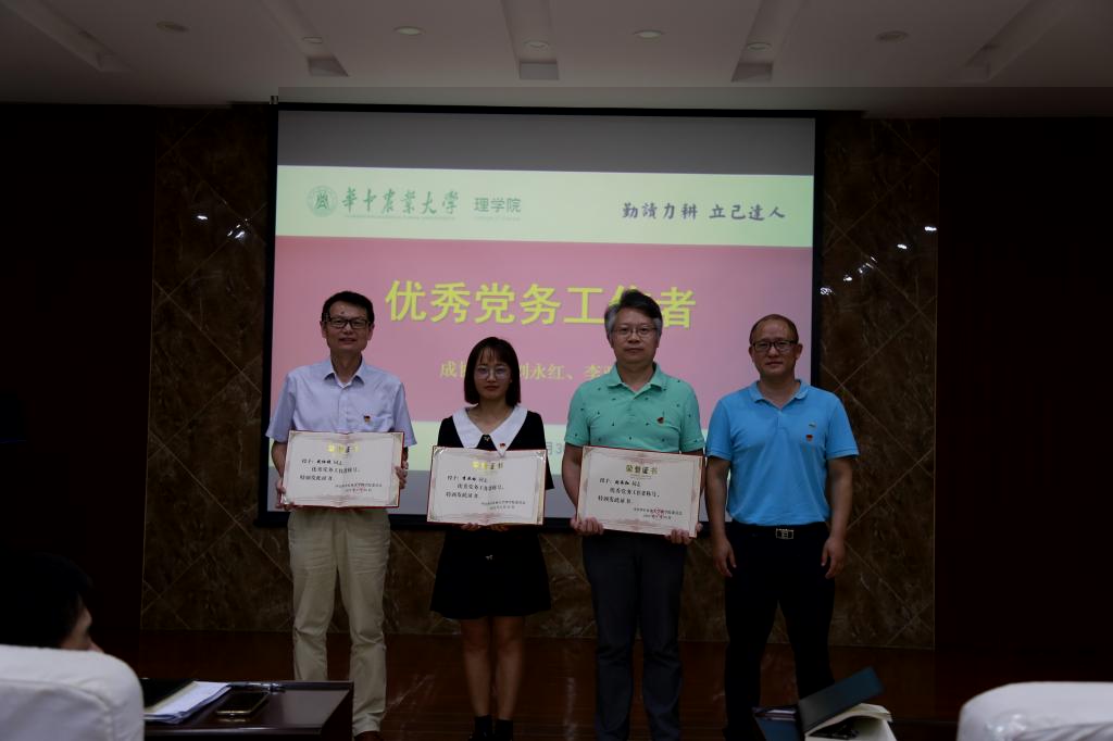 學院黨委副書記祝鑫宣讀《關于中共77779193永利官网理學院委員會表彰優秀共産黨員、優秀黨務工作者和先進黨支部的決定》表彰文件,她表示,希望受表彰的先進集體和優秀個人珍惜榮譽、戒驕戒躁、再接再厲,進一步發揮示範引領作用,開拓進取、奮發有為、再立新功。全院各師生黨支部和共産黨員要向受表彰的“兩優一先”學習,全面貫徹新時代黨的建設總要求,全面貫徹黨的教育方針,堅守信仰、堅持信念、堅定信心,對黨忠誠,積極工作,團結帶領廣大師生不忘初心、牢記使命,搶先機、開新局、創佳績,推動學院事業高質量發展。學院副院長成協設、沈婧芳為丁聰等34名同志頒發“優秀共産黨員”榮譽證書,譚佐軍院長為成協設等3名同志頒發“優秀黨務工作者”榮譽證書,學院黨委書記塗俊才為數學與統計學系教工第二黨支部等3個師生黨支部頒發“先進黨支部”榮譽證書。