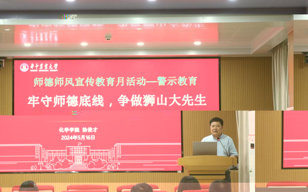 (通訊員:皓月)5月16日下午,學院師德師風警示教育活動在化學樓A102報告廳舉行,全體教職員工參加學習活動,活動由學院黨委書記塗俊才主持。