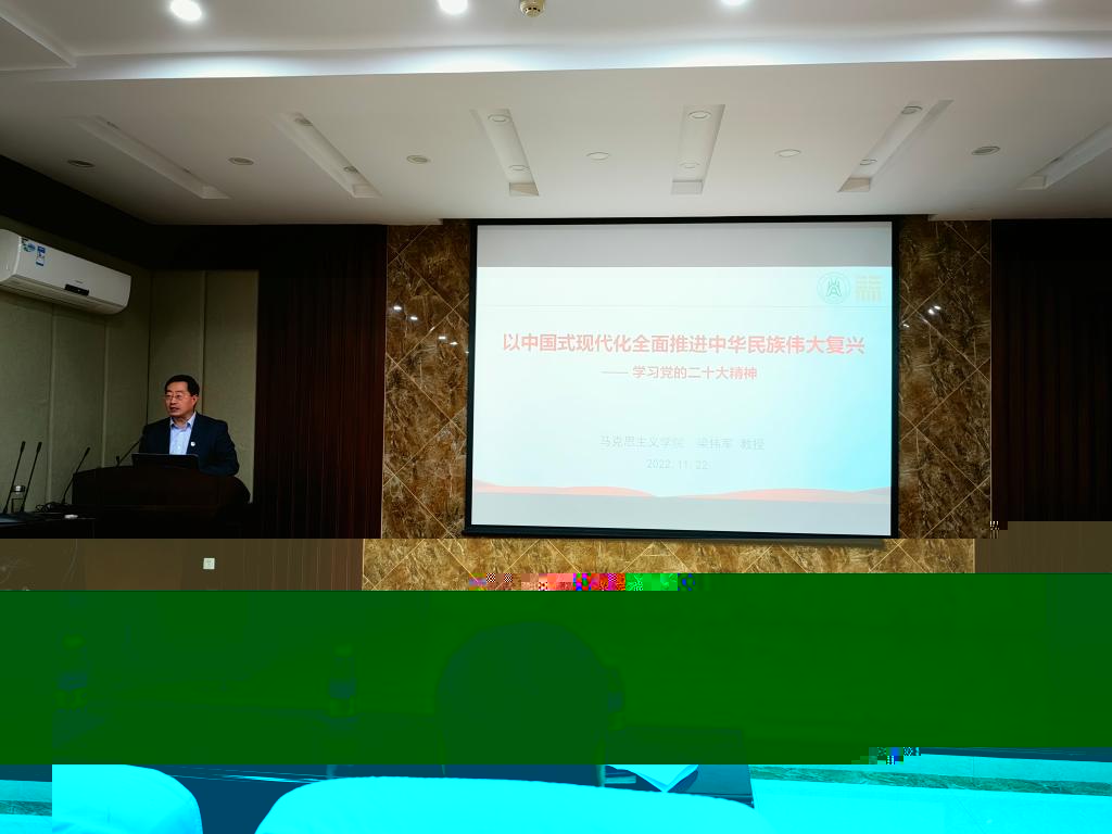 (通訊員:皓月)11月22日,理學院黨的二十大精神學習“精讀精講”宣講報告會在逸夫樓A109報告廳舉行,馬克思主義學院院長梁偉軍教授應邀為學院師生作輔導報告。學院黨委書記塗俊才主持報告會。
